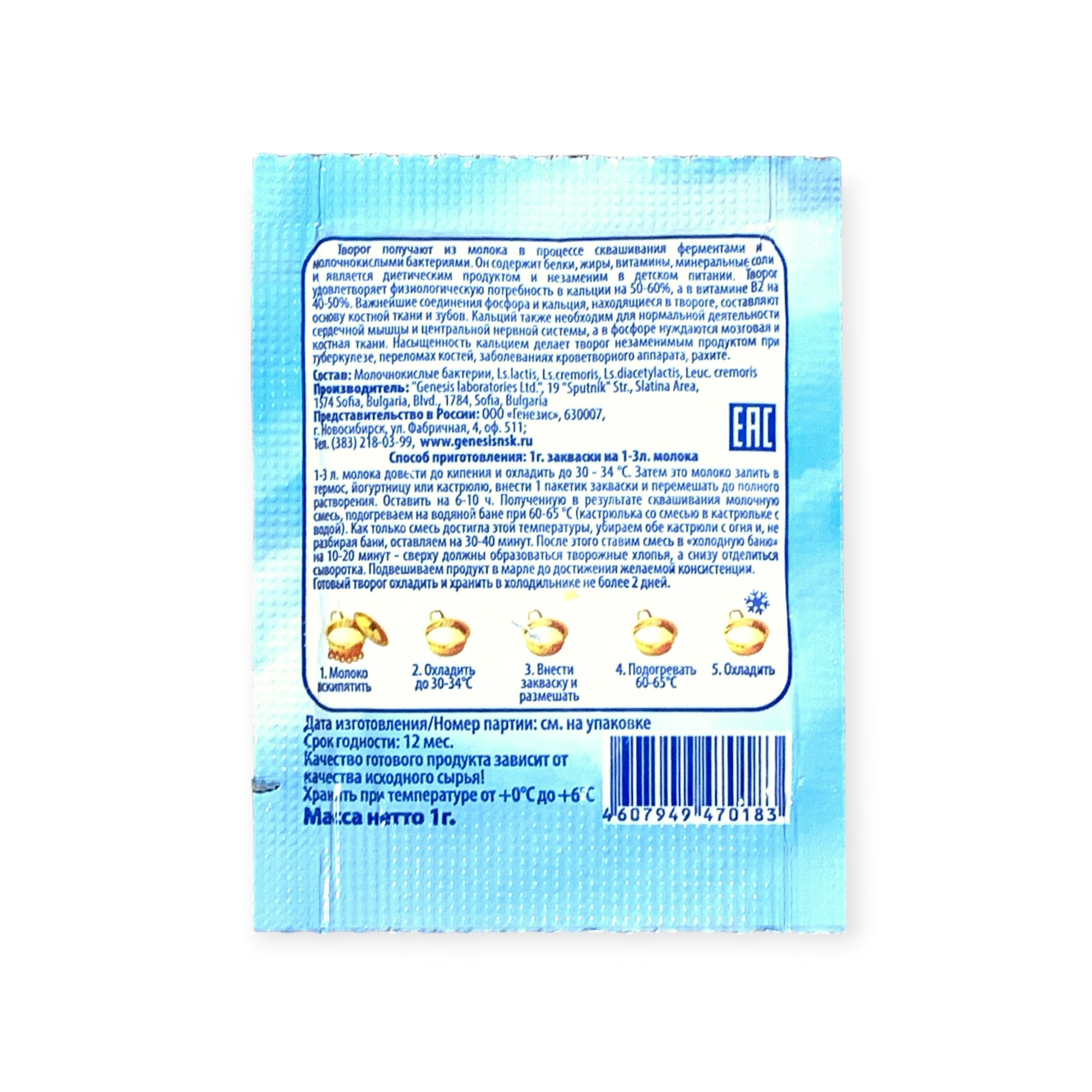 Закваска Творожок Genesis, 1 пакет от 100 руб. с доставкой. Пункт выдачи в Заозёрске. Интернет магазин по сыроделию. Всё всегда в наличии.